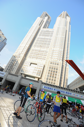 エ シティサイクリング大会は、「2013東京シティサイクリング」とし、都庁都民広場を集合会場に、第1庁舎前から甲州街道交差点までは1車線規制し、代々木公園、表参道、青山霊園、国立新美術館、東京ミッドタウン、六本木、東京タワー、新橋、築地市場、勝鬨橋、晴海大橋、お台場、豊洲、塩浜、東京スカイツリー、両国、大手町、皇居前、赤坂を巡り、神宮外苑絵画館をゴール会場として受付者1,532名で開催した。