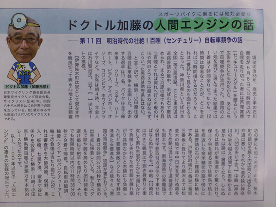 ・連載「自転車人」(例示 夏号:木製ロードレーサー製作の佐野 末四郎氏)