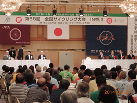 ○全国サイクリング大会の会場となった高松国際ホテルの式典会場と出発前の注意事項