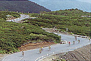 ヒルクライムとダウンヒルの連続は、走行テクニックを発揮できる絶好の設定です。経験者におすすめですが、レベルに差があってもグループごとに走れば楽しめます。