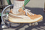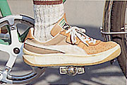 足の親指の付け根をペダルの中心に乗せるようにすれば、足の回転する力を効率的にペダルに伝えることができます。また足の疲れを最小限におさえることもできます。