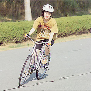 ブレーキ時、フロントだけかけたり、体重 を前方に移動させていると前に転倒することがありますから、絶対にしないようにしましょう