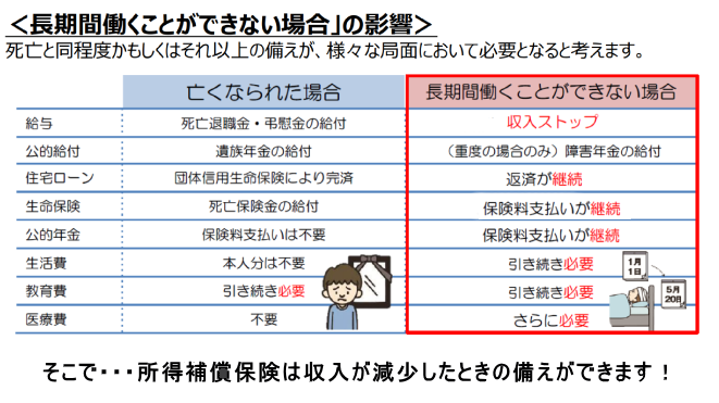 ①ケガや病気で働けなくなった場合に補償!(自転車搭乗中のケガに限りません!!)