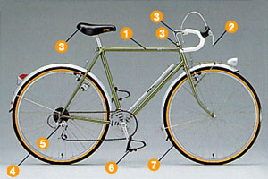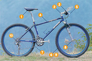 ヘッド部、ハンドル、タイヤの中心など、ガタの出やすい部分です。ガタがある場合は、専門店などで正しく調整してもらいましょう。
