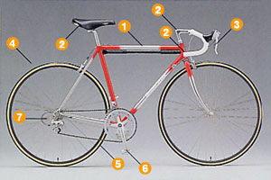 平均走行速度が高めのロードレーサーは、身体に合ったサイズのフレームを選ばないと効率の良い走りができません。ショップのアドバイスを聞いて、必ず身体に合ったサイズを選びましょう。