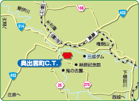 車中国自動車道「東城I.C.」から国道314号経由で1時間30分。