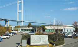 来島海峡大橋は、大島と今治の間、約4kmの来島海峡を渡る世界初の三連つり橋。自動車だけでなく、自転車や徒歩で渡ることができ、橋から眺める海峡の風景は最高だ。